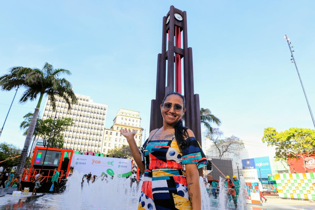 A Aline Maria, moradora do Jacarecanga, diariamente cruza a Praça do Ferreira. A poucos metros dali, ela trabalha como auxiliar de cozinha em um restaurante, e hoje o sentimento foi diferente ao apreciar as intervenções. “Estou impactada com a beleza que ficou. Eu tinha minhas dúvidas se iam entregar na data certa, mas vi que realmente fizeram de tudo”, parabenizou.